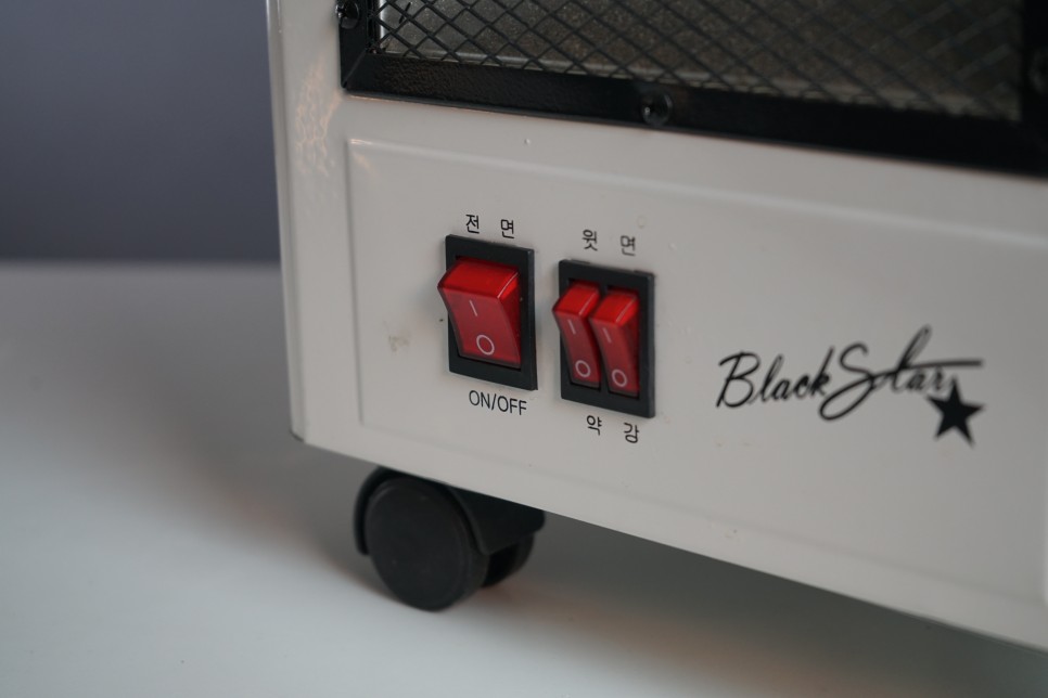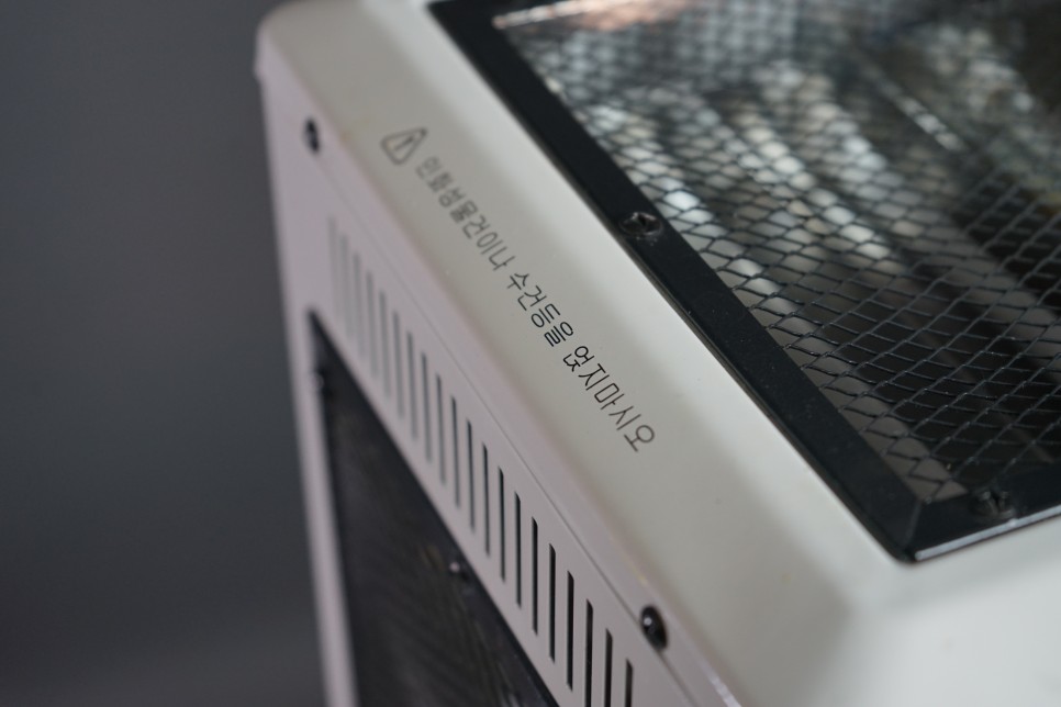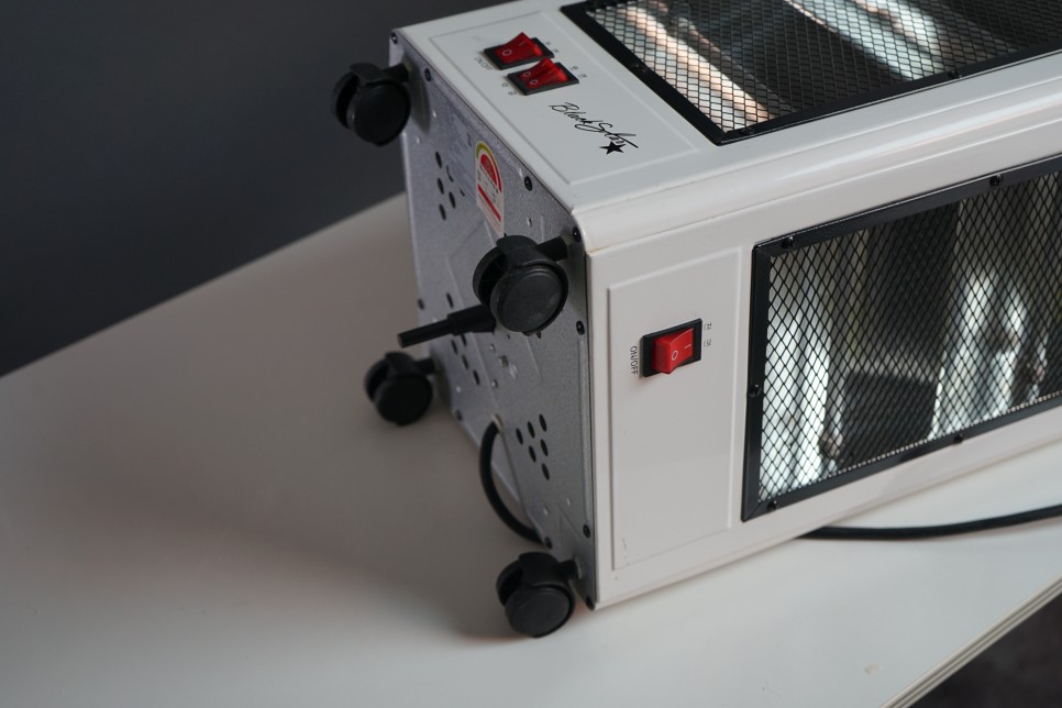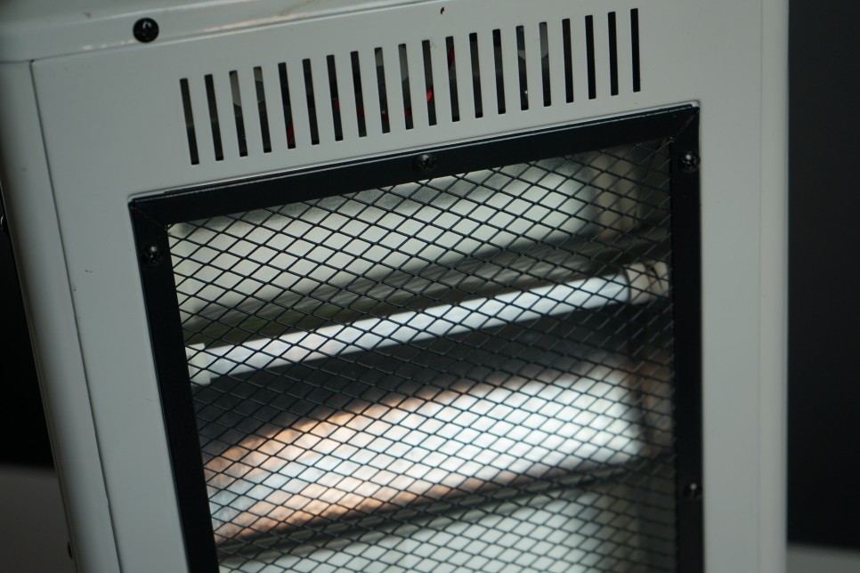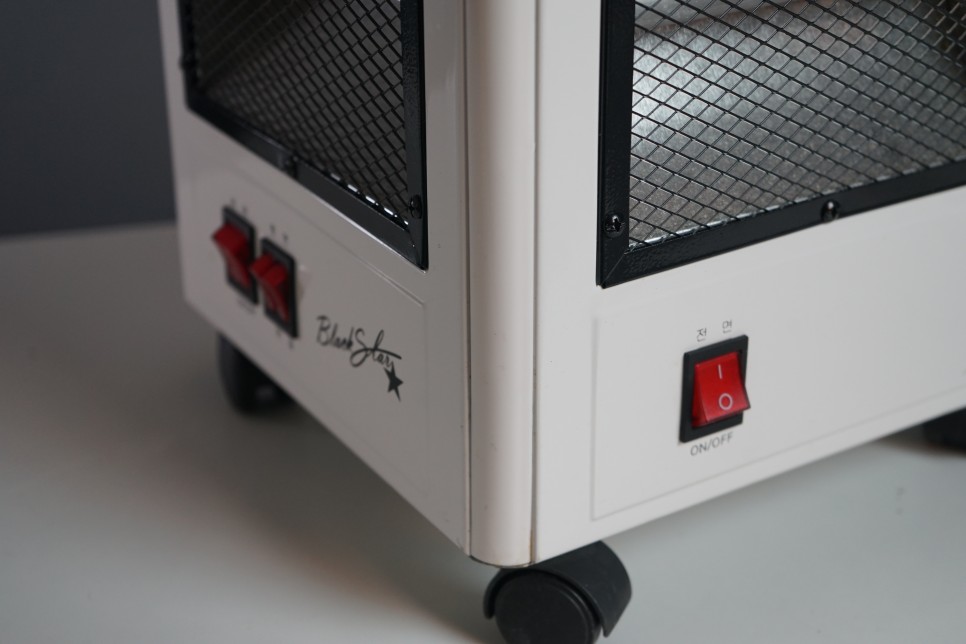 이 오방난로는 한쪽면으로 나오는 일반 전기 석영 난로와다르게